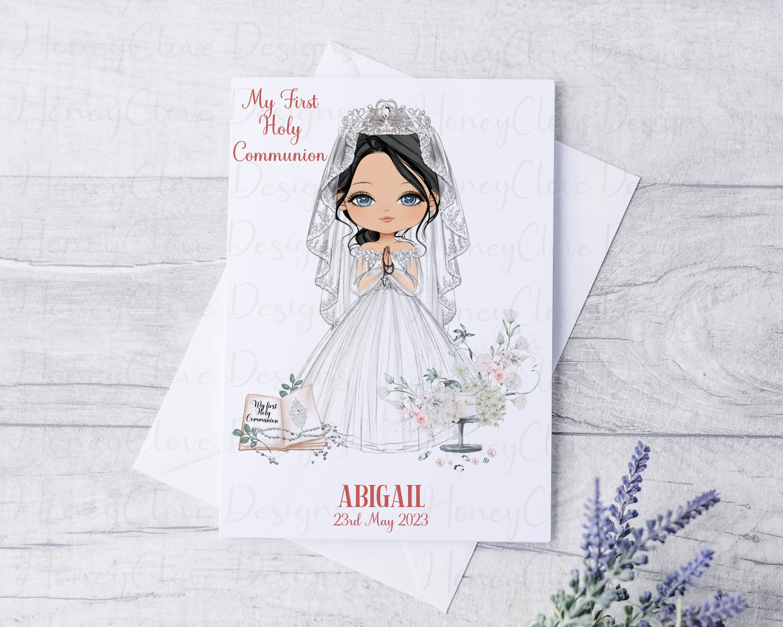 This print is fully personalised with the name and date of communion along with the following;