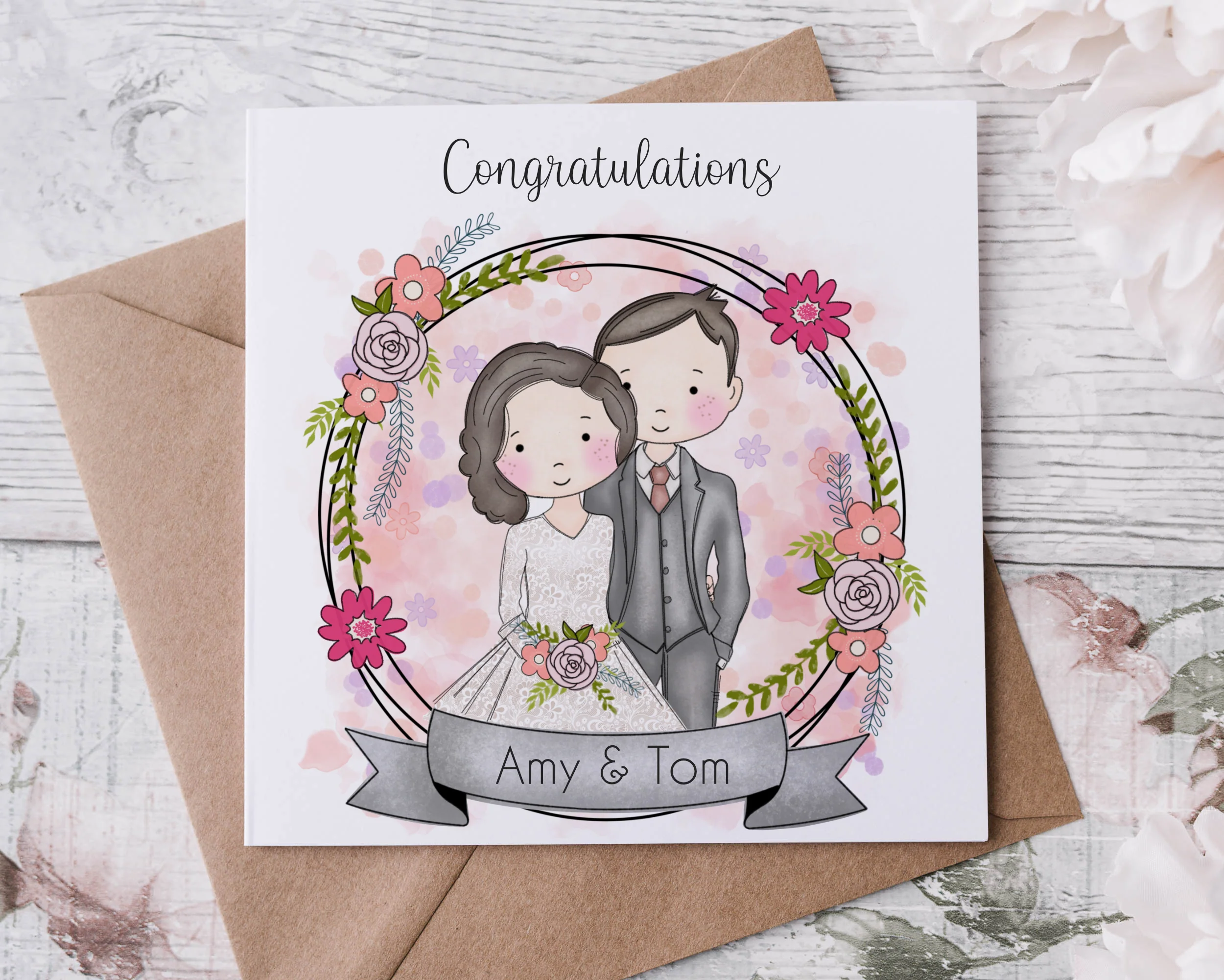 Very cute and special card ideal for a wedding! Cute cartoon design. Choice sheet is attached. Please choose row number and then the head number that you would like for the card. There is also a choice of glasses and facial hair if required.